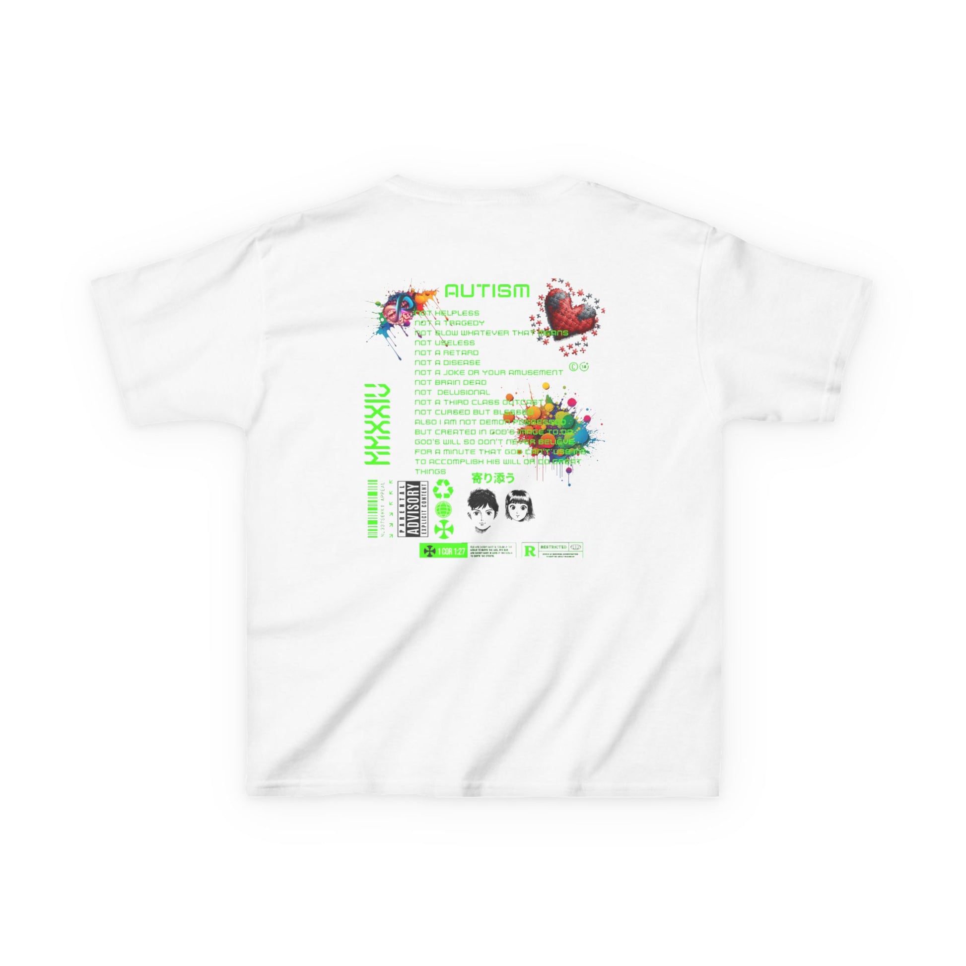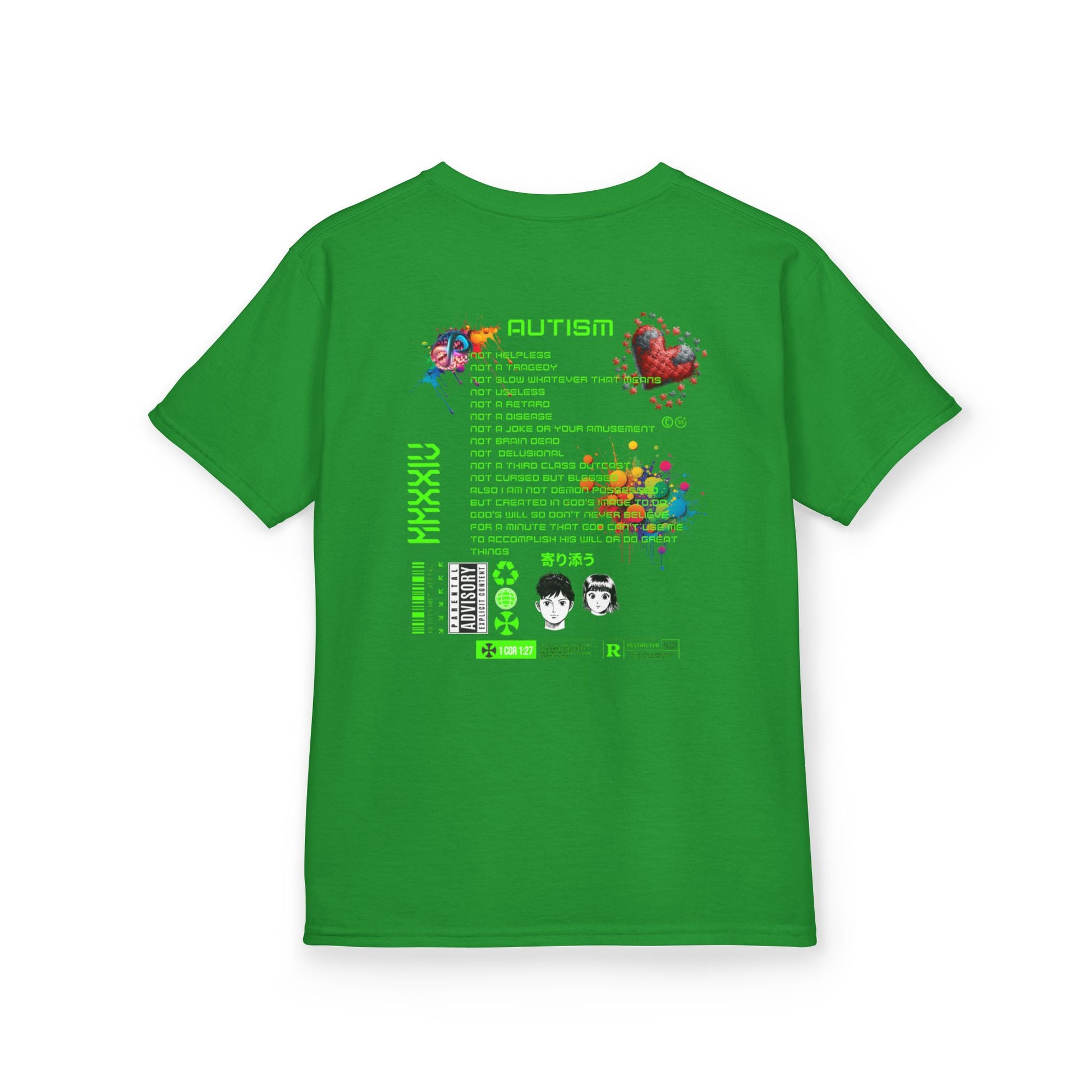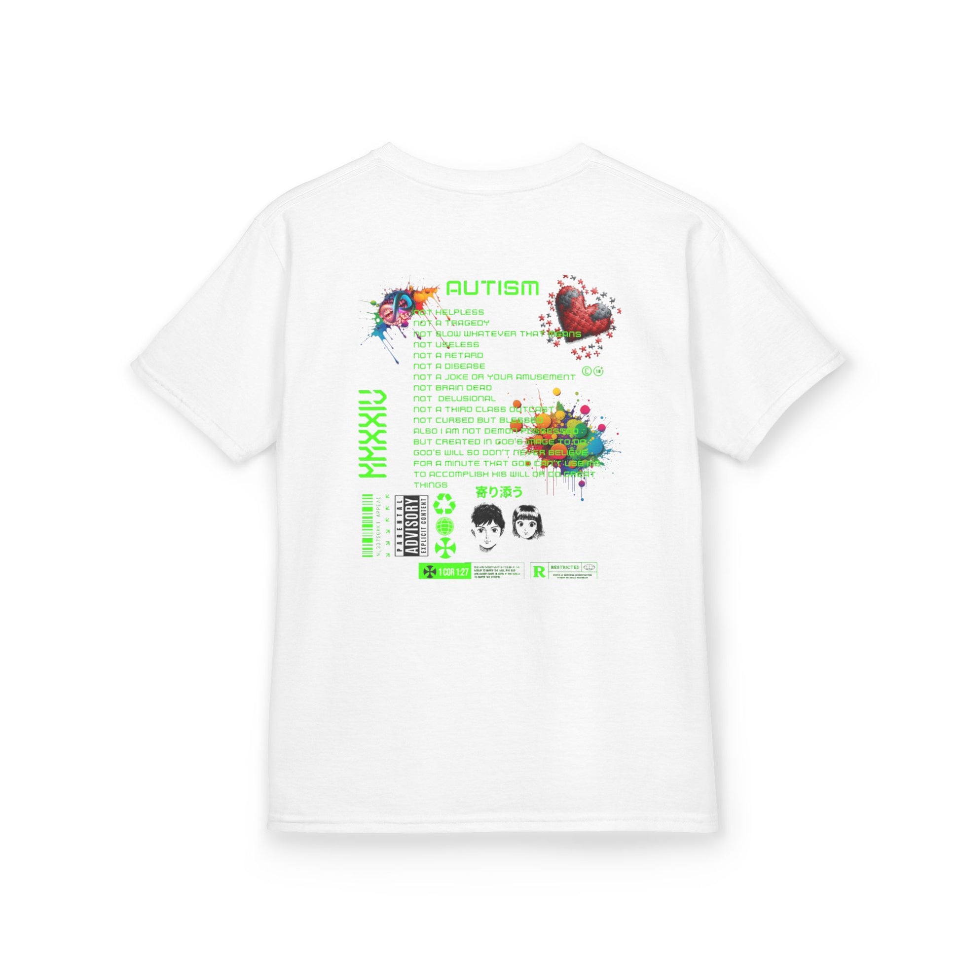 This kids' tee speaks up with quiet confidence. Clean lines and a soft hand make it a comfortable canvas for Autism streetwear — a look that blends everyday play with thoughtful visibility. Imagine your child heading out the door, collar snug, shoulders steady, wearing something that reads as brave and calm at once. The shirt sits light and familiar on small frames, made to move with them through school routes, neighborhood hangouts, and family gatherings where being seen matters.