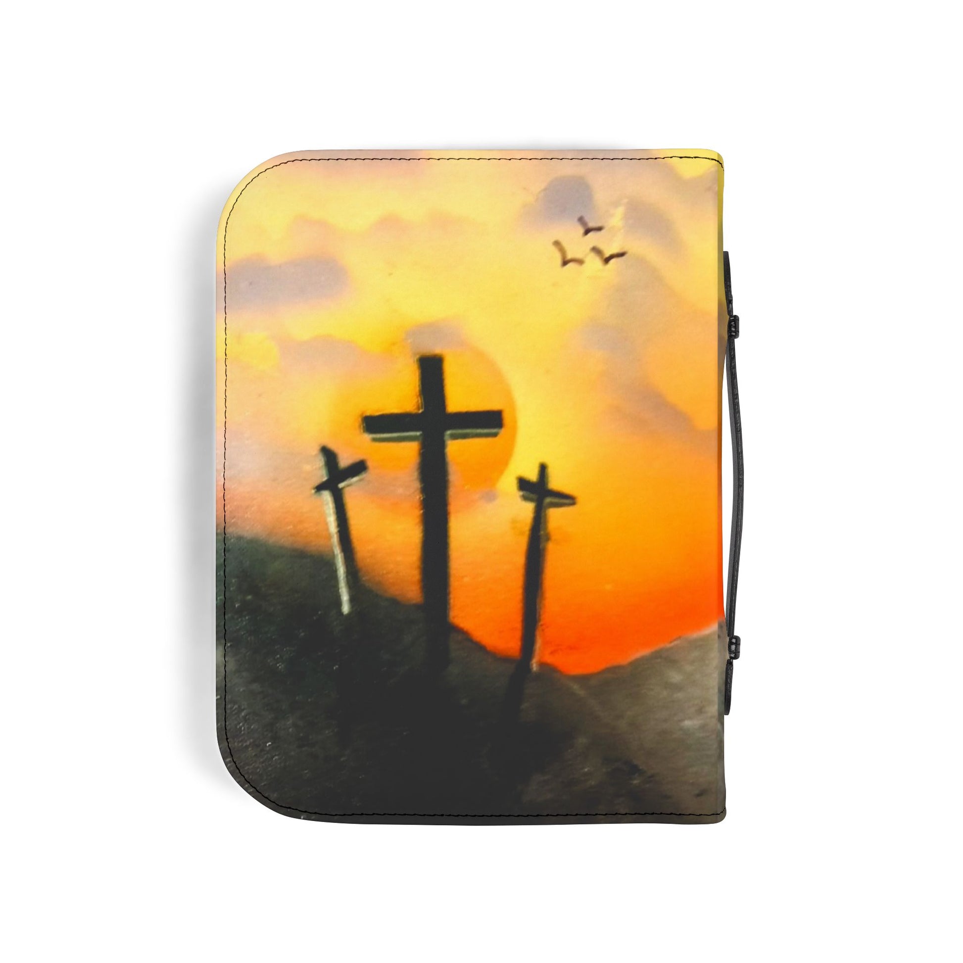 Personalized Sunset on Calvary Bible Cover — Spray Paint Art