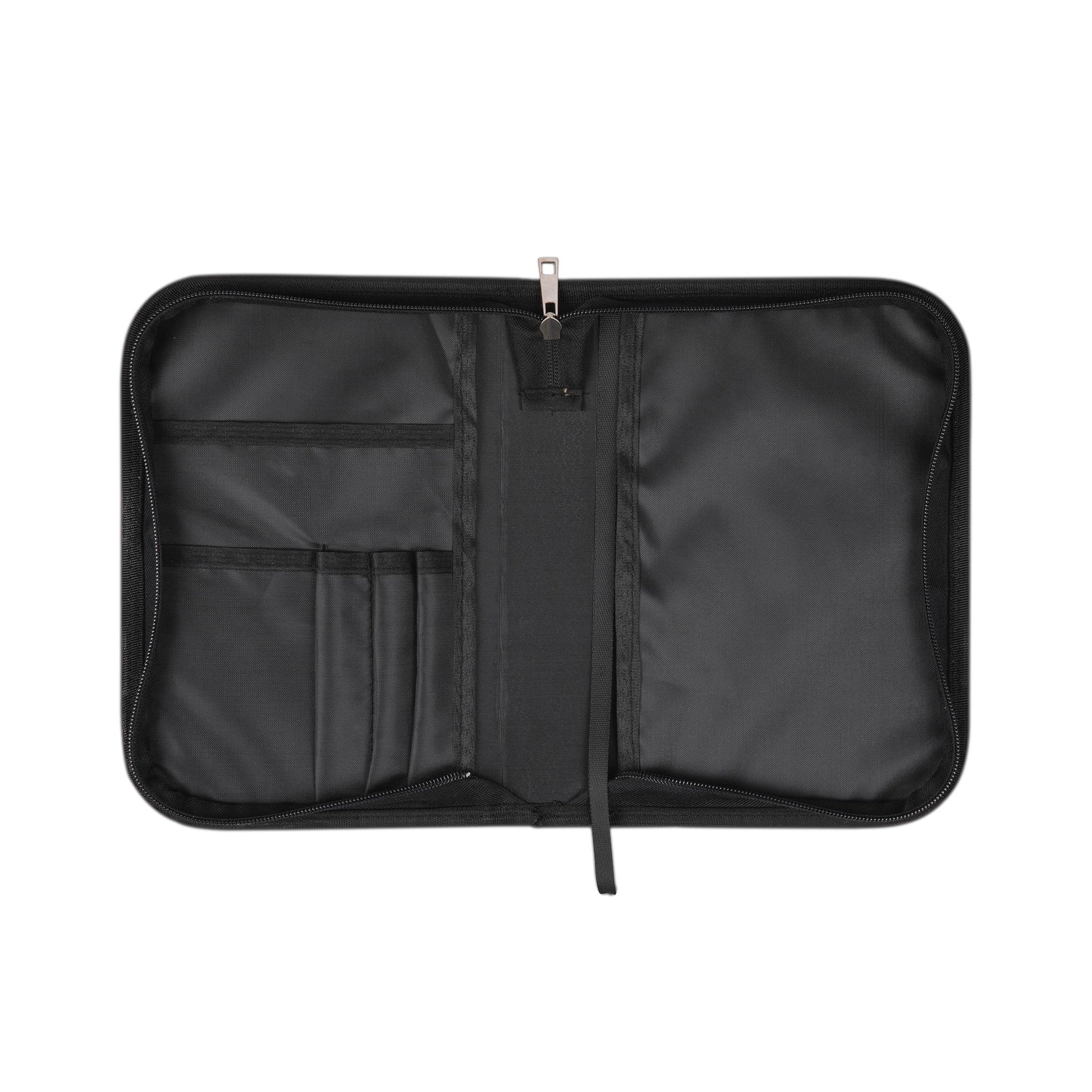 - Contrasting black handle, interior, stitching, and zipper for durability and style